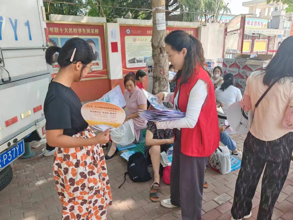 6月7日凌晨4:30,williamhill英国中文党委书记王雪芳带领学院领导班子成员和骨干教师一行10人,组成五个招生工作组,从中原校区出发,分别前往邓州市11个高考考点,开展第二阶段招生宣传活动。邓州市11个考点分别为第一高级中学、第二高级中学、花洲实验高级中学、第六高级中学、湍北高级中学、湍南高级中学、三贤高级中学、城区第一小学、城区第五初级中学、城区第十一小学和南阳科技职业学院。