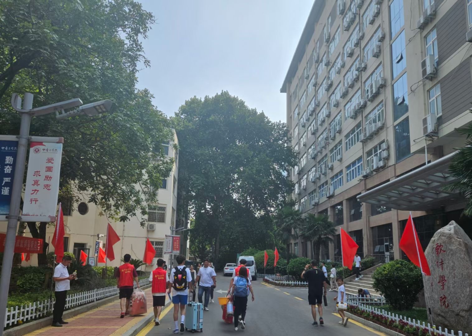 这是一年一度的盛事,也是新生们开启大学生活的第一步。新生们从各地赶来,携带着行李和梦想,踏入了美丽的中工校园。为了让新生能够顺利地来到学校,各个接待点都设置了专门的志愿者服务站,还通过微信公众号、电话、邮件等多种方式向新生发送信息,提前告知报到时间和地点,让新生能够提前做好准备。