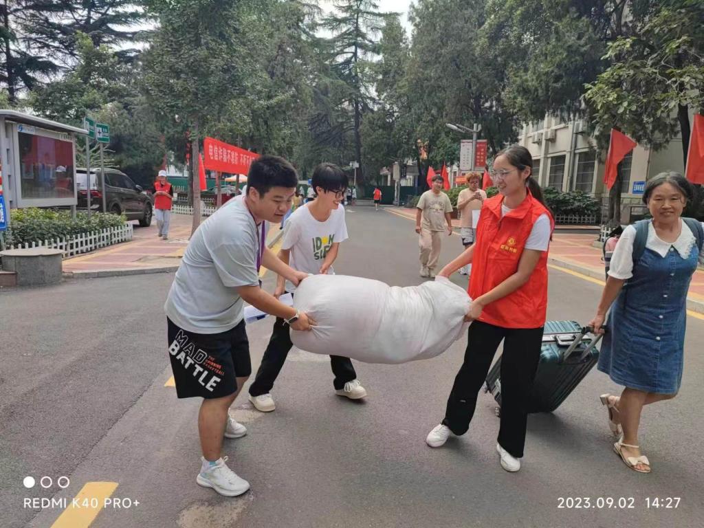 迎新现场到处都是忙碌的身影,新生们按照学校规划的路线逐步完成入学手续,在学院的安排下有条不紊的进行着。志愿者们主动地向新生和家长打招呼,帮助新生搬运行李,解答问题,让他们迅速熟悉校园环境,尽快适应大学生活。