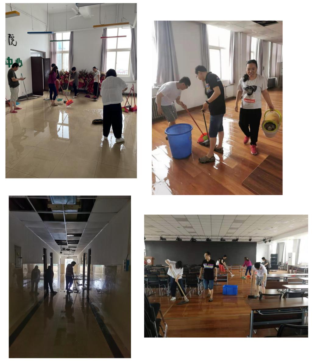 7 月 22 日上午,学院教师党员克服重重困难集结在基础实验楼内,在软件学院党委书记李长林的带领下各支部党员分工合作,对积水、漏水严重的报告厅、会议室、实验室等场所进行拉网式排查,大家仔细地对房间内的污水、杂物进行打扫整理,对漏水情况进行及时堵塞和上报。整整一上午,党员们干的热火朝天,有些老师的鞋子虽然已经湿透了,但是依然没有停止手中的劳动,他们不怕苦不怕累,专挑脏活累活干,不畏危险,将主要区域打扫的焕然一新,及时将积水排出。他们在汛情当前凝聚共识、积极行动、勇敢向前,全力确保学校财产安全,用责任书写忠诚,用行动诠释担当。