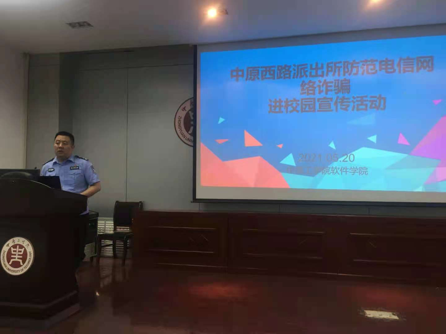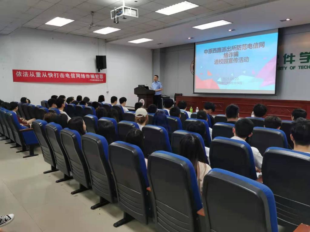 为了让在校学生进一步了解电信网络诈骗,增强我院大学生电信网络诈骗的防范意识,并学会如何预防电信网络诈骗,2021年5月20日下午,中原西路派出所负责社区的张健所长一行来到williamhill英国中文,为在校师生带来“防范电信网络诈骗进校园”宣传活动,共有150人参加会议。