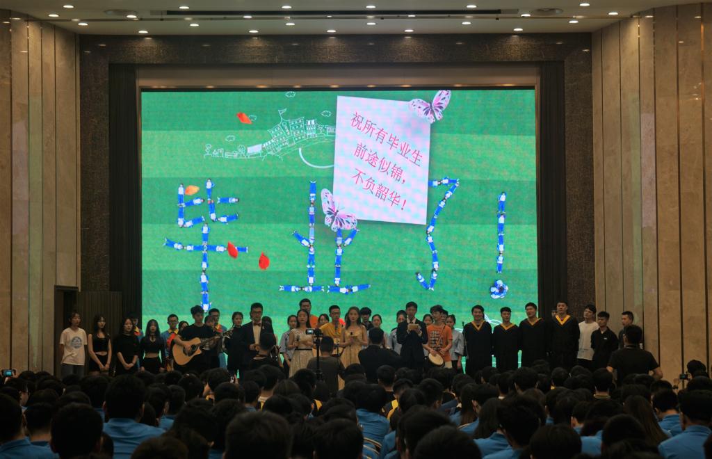 大学时代总是承载了人们太多的美好,随后社联民舞社为我们带来第四个节目—舞蹈《梦中的额吉》和《送别》,仿佛让我们跟随她们的脚步一起回到了自己的青葱岁月。入学时我们总想着想着毕业,该毕业了我们却又因为将要离开而失眠。我们在四十四亩地里感受人间冷暖,在酸甜苦辣中体会人世沧桑,这里承载了我们的青春,承载了我们的梦想。第五个节目通讯社为大家带来他们的原创朗诵《我们毕业了》。欢快俏皮的语调向大家再次讲述了大学校园里有趣的事物,仿佛我们又回到了那个场景,那次相遇。但我们还是阻挡不了毕业的脚步。这一刻我们可以大声的喊出"我们毕业了"!最后社联吉他社及全体参演人员为大家带来歌曲《同桌的你》,祝全体毕业生毕业快乐!