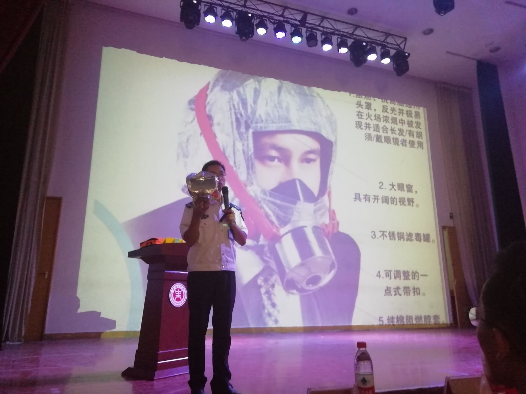 耿肖老师通过对典型火灾事故案例起火原因的分析,以及事故的调查和处理,生动形象地向我们说明了火灾的危害性以及可能带来的严重后果。同时也讲解了各类灭火器,防烟面具等消防器材的原理,效果和使用方法,以及火灾现场的逃生知识和急救知识等。