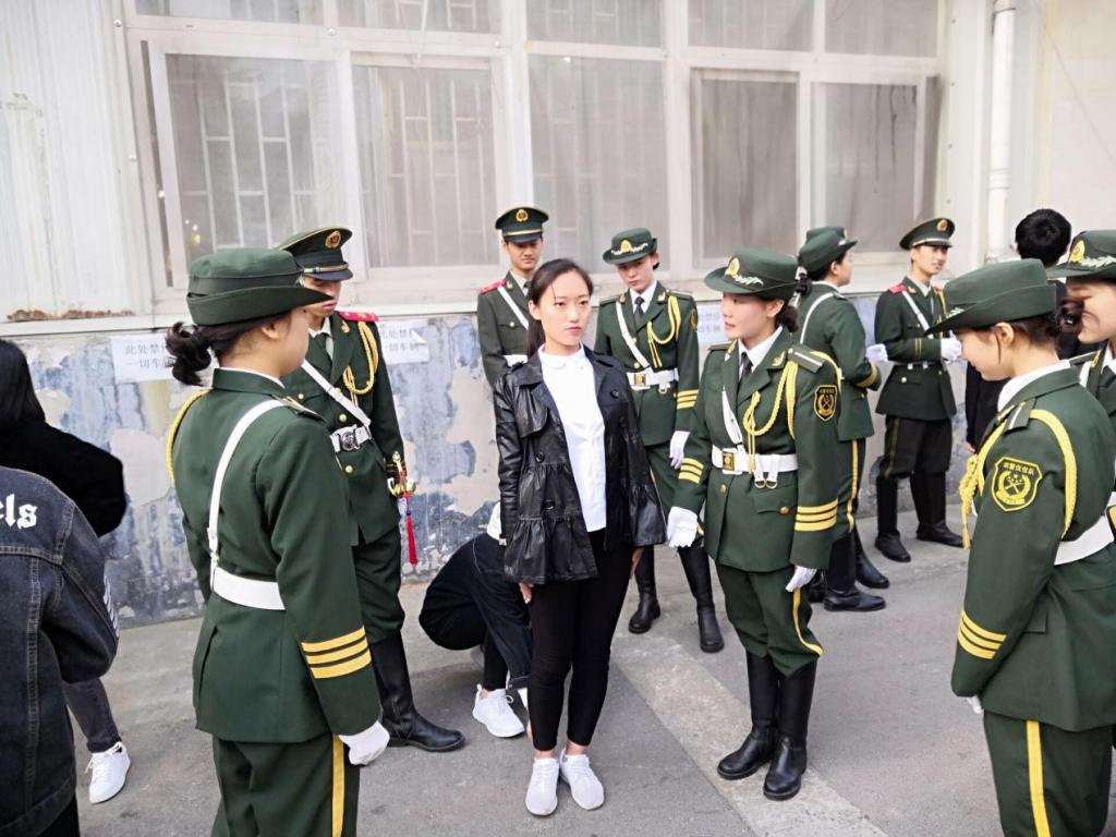 (图为南区国旗护卫队成员指导我院仪仗队成员)
