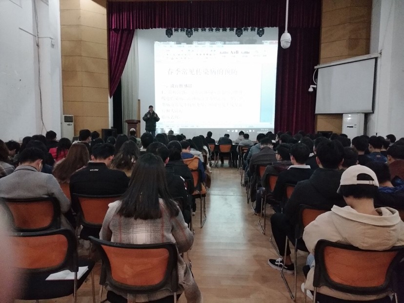 王医生从常见春季传染病的类型、如何预防等方面进行了讲解,告诉大家有疾病要及时就医。重点讲解了肺结核病的防治措施和国家免费治疗结核的相关政策,包括什么是结核病、结核病的传播途径和临床表现、结核病疫情及特点、肺结核的主要症状等等。王医生强调,由于学校人口高度集中,通风条件相对受限,疾病感染风险和传播的机会大大增加。因此,肺结核的预防要做到控制传染源,切断传播途径和保护易感人群,平时要自觉养成良好卫生习惯,不随地吐痰,房间内要经常开窗通气,保持空气清新,早日接种卡介苗,以及开展适量的体育运动,增强个人体质。