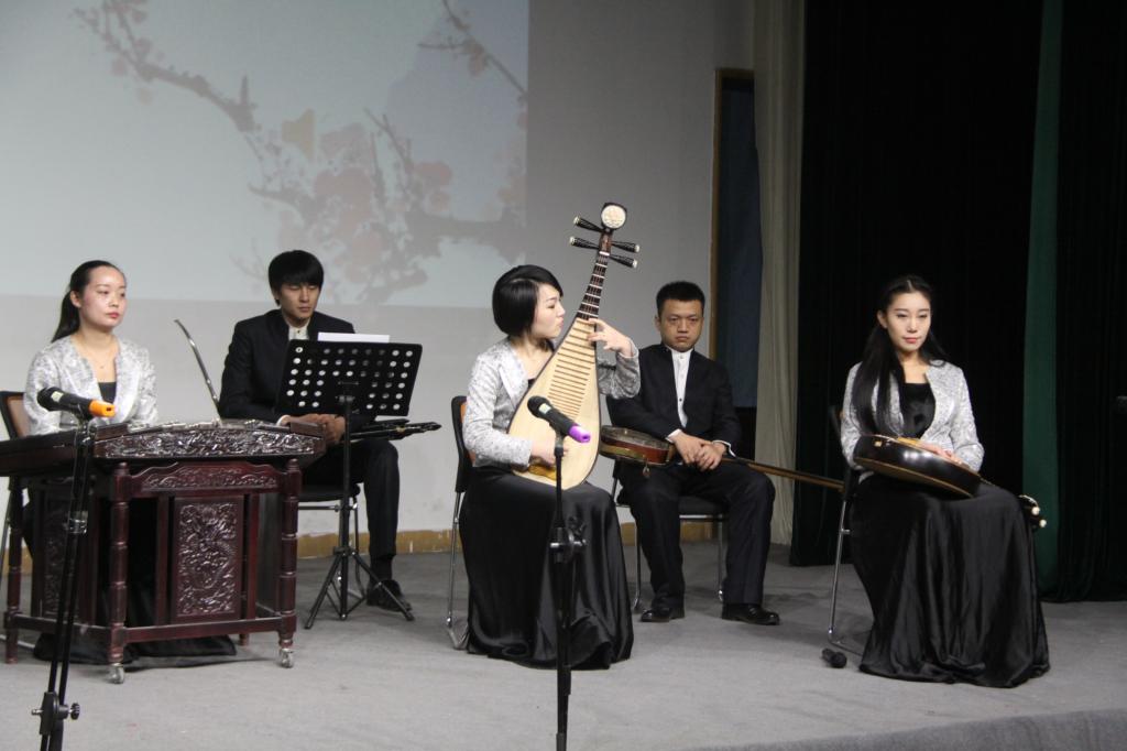 为了满足williamhill英国中文广大师生的强烈需求,专场音乐会分别于下午和晚上,举办了两场。音乐会上,河南民族乐团以一曲热闹喜庆的《喜洋洋》开场,赢得全场欢呼。紧接着,演奏家们先后展示了8种弦乐器和管乐器,如扬琴、琵琶、笙等,并通过代表旋律展现了每种乐器的独特音色。琵琶曲《阳春白雪》清新流畅,扬琴独奏《女儿情》婉转悠扬,二胡合奏《赛马》粗犷奔放,唢呐曲《打枣》描写了北方人民在打枣过程中的欢声笑语,表演诙谐幽默,惟妙惟肖。在《打枣》的明快旋律中,专场音乐会圆满落下帷幕,台下掌声经久不息。