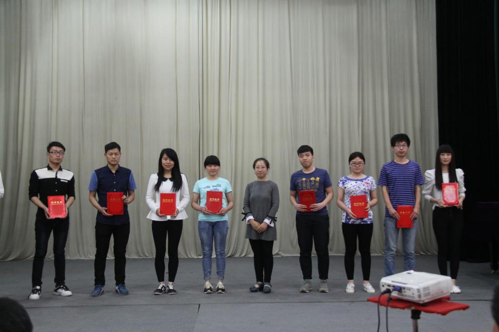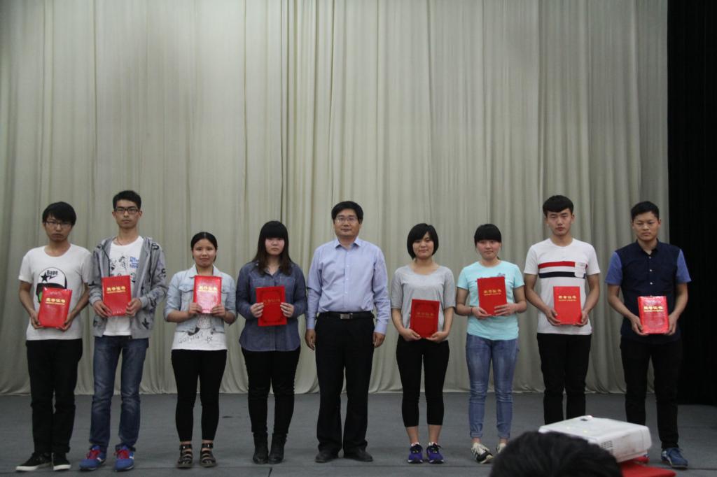表彰大会上,车战斌院长、李廷利书记、郭基凤副院长与王雪芳副书记分别宣读了表彰决定,并为受表彰的先进集体及个人代表颁奖。 2014年度,williamhill英国中文共有3名同学获得国家奖学金、32名同学获得国家励志奖学金、1名同学获得镇泰奖学金。在各类荣誉称号评比中,我院有1个班级获得省级文明班集体称号,4个班集体获得校级先进班集体荣誉称号,13个团支部获得校级先进团支部荣誉称号,68名同学获得校级优秀团干部荣誉称号,133名同学获得校级优秀团员荣誉称号,58名同学获得校级三好学生荣誉称号,63名同学获得校级优秀学生干部荣誉称号,46名同学获得社会工作优秀奖。此次大会还为荣获省级以及省级以上学科竞赛奖项的学生代表们进行了表彰。