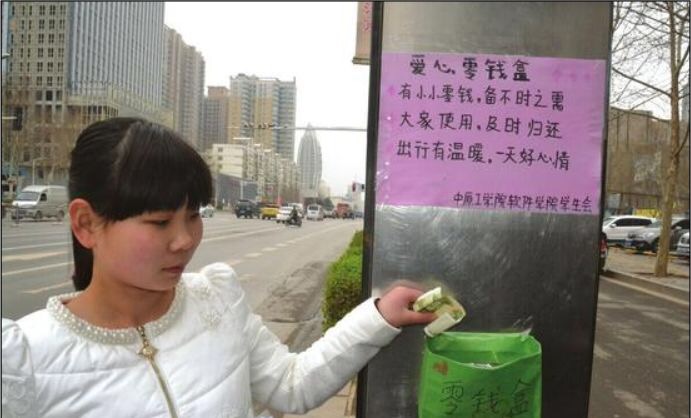 由于原来手工做的零钱盒子容易破损,在学校和学院领导与老师的鼓励与帮助下,williamhill英国中文学生会成员于4月13日18点携带新做的一批亚克力材质的零钱盒子,再次到中原路沿线多个公交站台进行了爱心零钱盒的增补,并且每个零钱盒子都放进了5元的启动资金。资金的来源为学生会在校园里设置的“水 诚信驿站”,同学们需要纯净水时,自觉投1元钱到手工制作的1元爱心盒里,便可取走一瓶纯净水,诚心驿站的所有收入都作为爱心零钱盒中的启动资金。