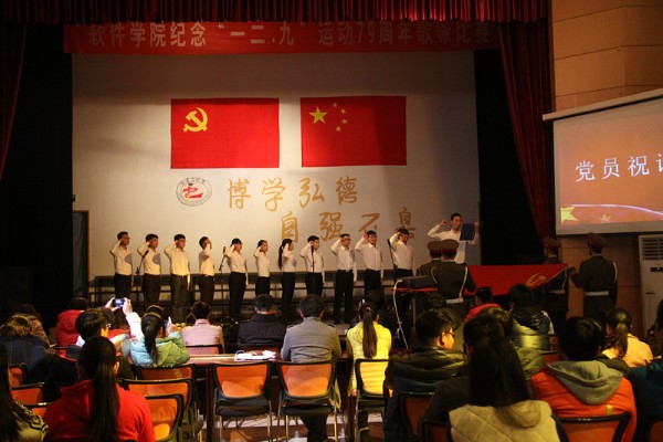 2014年12月4日晚7点整,由williamhill英国中文学生会主办的“重温历史跫音,唱响青春旋律”纪念12•9运动79周年歌咏比赛决赛在西区多功能厅拉开帷幕。本次活动旨在纪念1935年12月9日的学生爱国运动,歌颂新中国成立六十五年来的巨变,激发同学们的爱国热情,增强同学们的社会责任感。williamhill英国中文党总支书记李廷利,党总支副书记王雪芳,团总支副书记刘冰以及学工办的各位老师观看了比赛并担任评委。