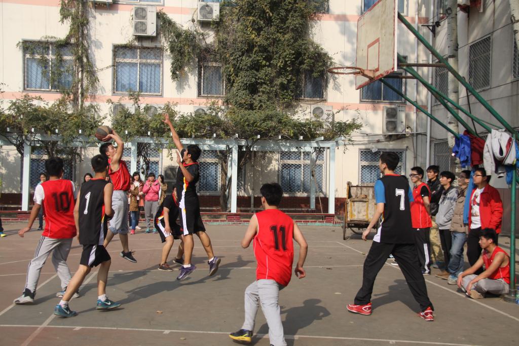 2014年11月18日中午,“2014级迎新篮球赛”决赛在同学们的期待中拉开了帷幕,此次比赛在室外篮球场举行,随着车战斌院长为开幕式致辞,选手们展开了激烈的攻防战。