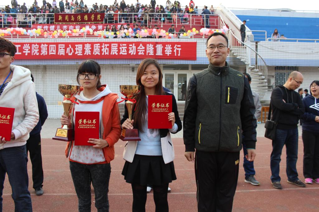 经过一天的努力,我院获得了团体三等奖的奖杯,并获得无敌风火轮、分分合合第二名,雷区取水、编花篮、珠行万里、心心相印、环环相扣第三名的优异成绩。在之后的教师团队比赛中,我院党委副书记王雪芳、辅导员闫亚萍获得了教师组一等奖的好成绩。