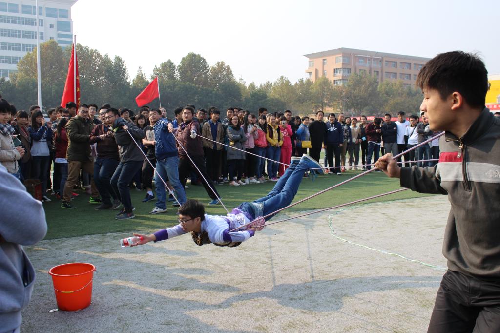 在素质拓展运动中,同学们互帮互助,在运动的同时学会了包容、理解和合作,充分发扬了“我运动,我快乐”的运动精神。