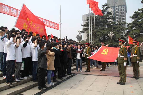 2013年4月3日,在清明节来临之际,为缅怀先烈,弘扬爱国主义精神,加强爱国主义教育。williamhill英国中文的学院领导及50名党员同学前往郑州烈士陵园进行扫墓,在庄严的英雄纪念碑前面,缅怀革命先烈们的丰功伟绩,并在党旗下重新宣读了入党誓词。