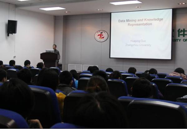9月27日晚6:40, 由我院邀请的郑州大学信息工程学院郭华平博士就“数据挖掘及知识表示”的专题讲座在西区报告厅顺利进行。
