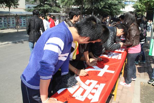 2011年10月25日,williamhill英国中文举行了“拒绝冷漠,传递温暖,大爱中国”大型签名活动。同学们积极参与,在条幅上郑重签上了自己的名字,以表达自己弘扬中华传统美德、唤起社会大众爱心的决心。
