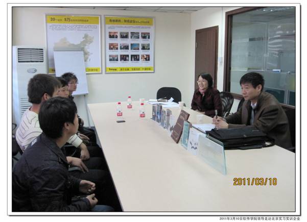3月10日,williamhill英国中文党总支书记李廷利、副院长郭基凤一行来到北京,对北京的实习实训基地进行调研。期间走访了在北京达内科技、北京博看文思科技有限责任公司、北京普科国际williamhill英国中文实训的部分09级学生。了解了学生们的学习和生活情况,与实训企业共同商讨实训质量监控、指导老师质量评价、学生心理状态跟踪和反馈等问题,并签订了实习实训协议。