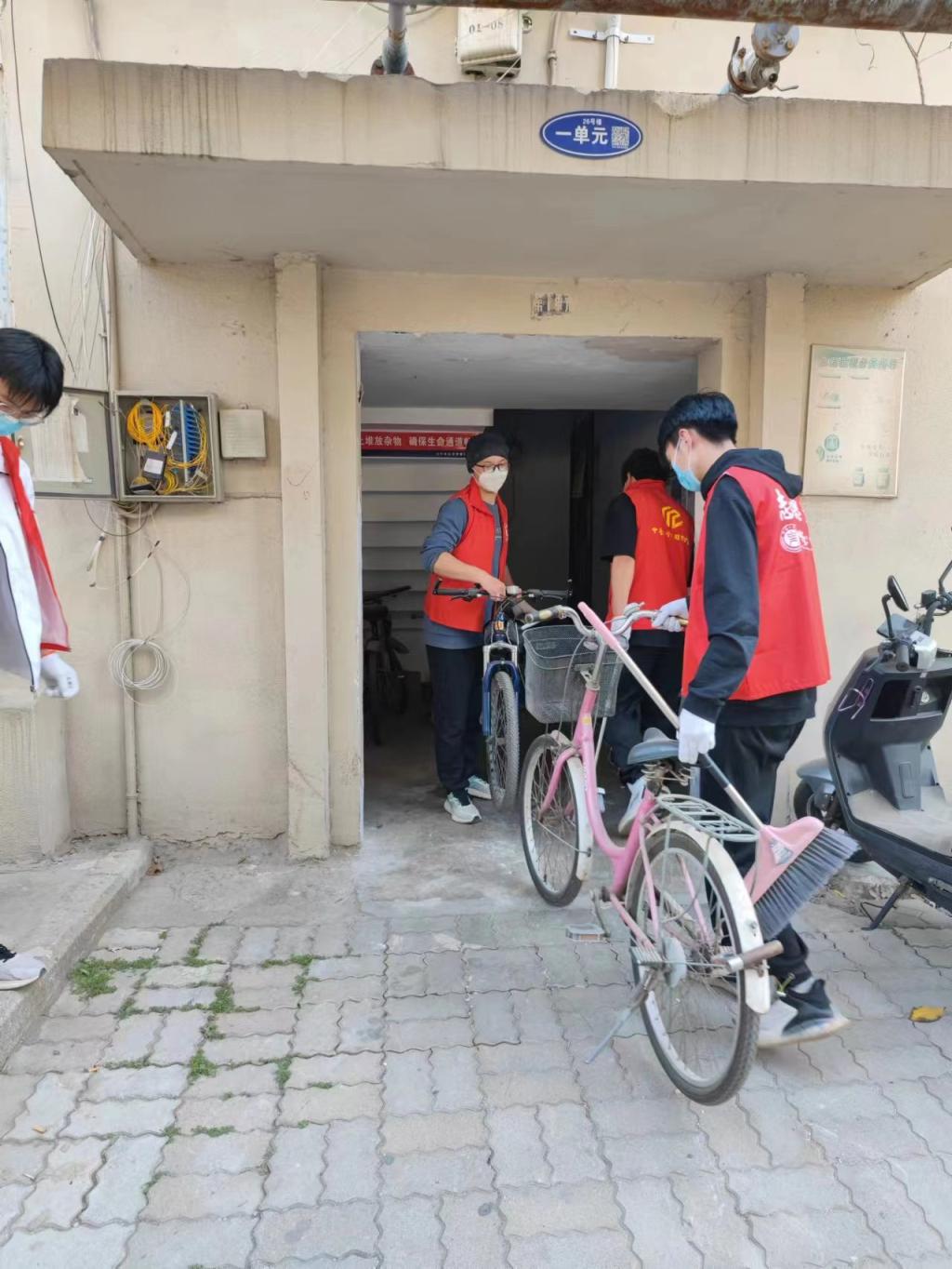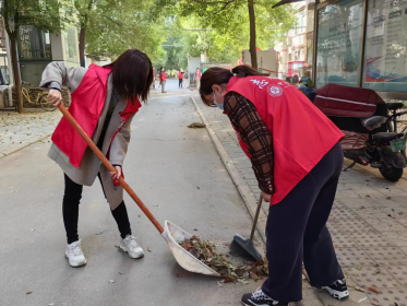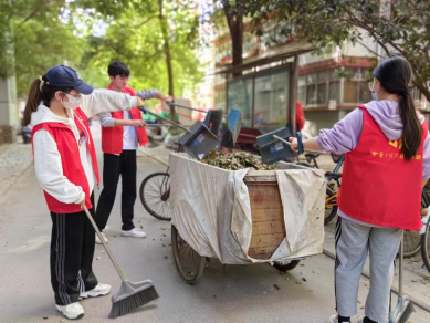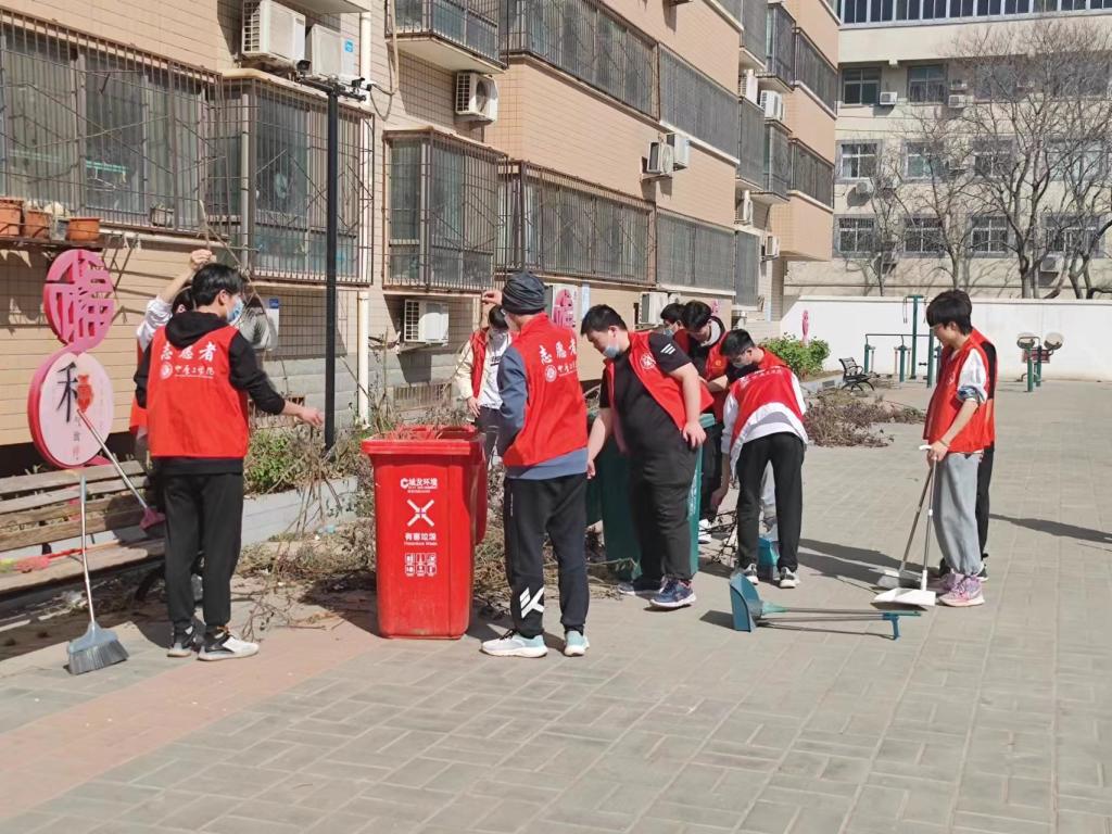 一到达社区,大家迅速投入工作状态,志愿者们在工作人员的指引下分成两组,分工协作,重点进行擦洗橱窗、清扫小区隐蔽的区域。在打扫过程中,同学们有的仔细清理单元楼大门上的广告贴纸,有的将楼栋里的自行车搬到户外摆放整齐,还有一部分同学打扫公共卫生。经过几个小时挥汗如雨的劳动,社区环境焕然一新,地面干净整洁,志愿者师生的辛苦劳动得到了社区工作人员和百姓的一致好评。