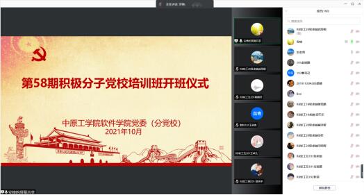 10月5日,我院依托腾讯会议网络平台顺利举办了第58期积极分子党课开班仪式暨第一次党课。williamhill英国中文、数据科学与技术系院长刘卫光、学生支部书记代表及163名入党积极分子共同参加了开班仪式。仪式由学院副科级组织员安榜主持。