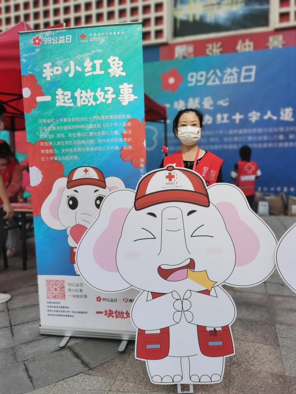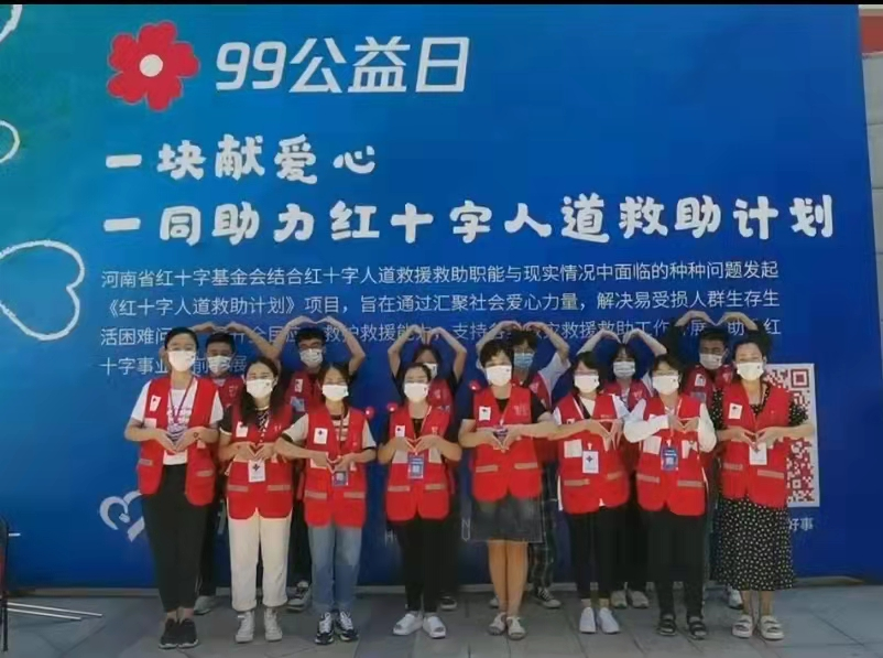 在第37个教师节来临之际,为积极响应河南省红十字会“99公益日”活动,williamhill英国中文党委提前谋划,精心准备,在9月9日当天由学院党委书记王雪芳、副书记王冰组织党员先锋队的师生来到金成时代广场“99公益日”的活动现场用爱发声、爱心传递、为爱募捐。