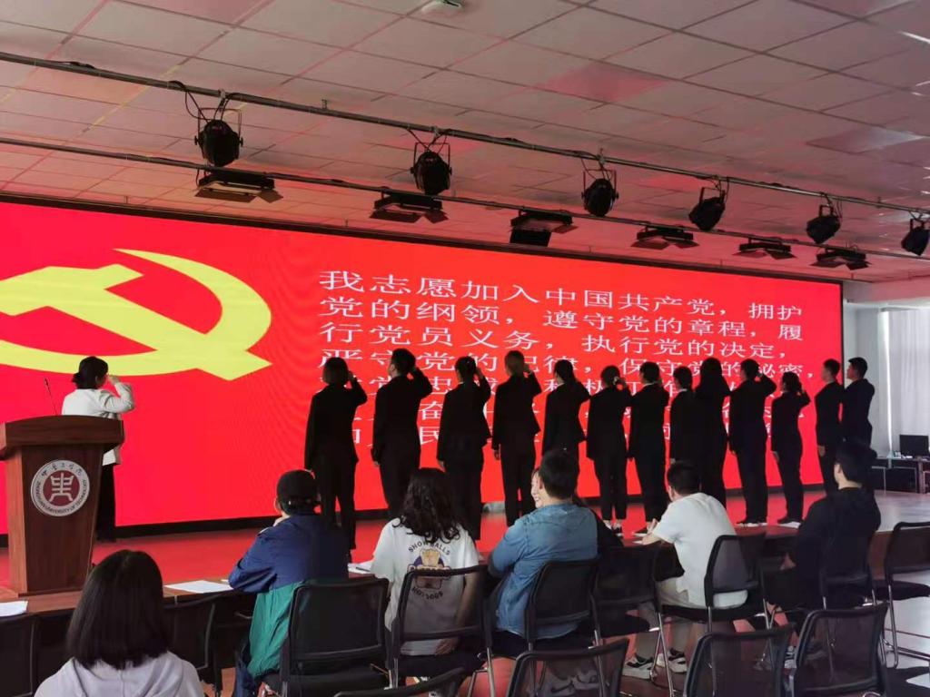 支部书记安榜同志带领新党员在党旗下进行庄严宣誓,洪亮的宣誓声展现了他们的坚定的共产主义信念与入党决心。