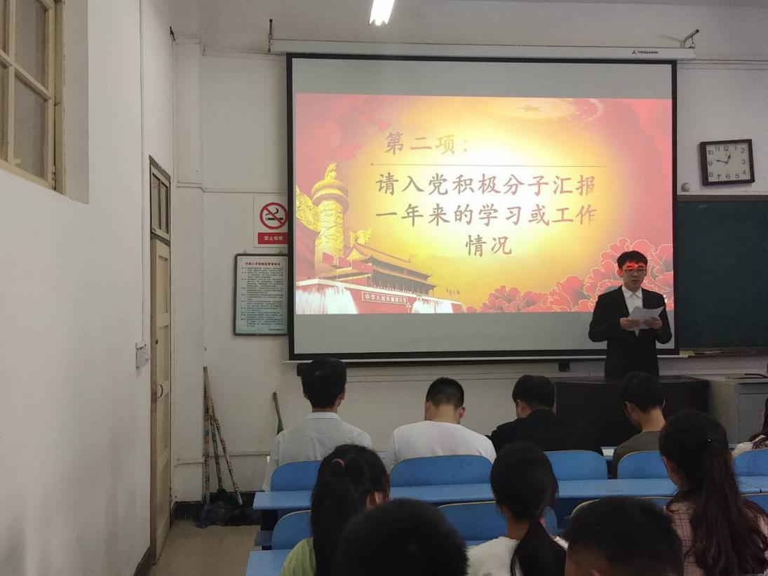 大会进行第二项,由刘艺婷等三名积极分子汇报这一年的学习情况。三名积极分子在此都谈到了对党有新的认识,并都把努力学习落实到行动上,积极参与各种党组织活动。