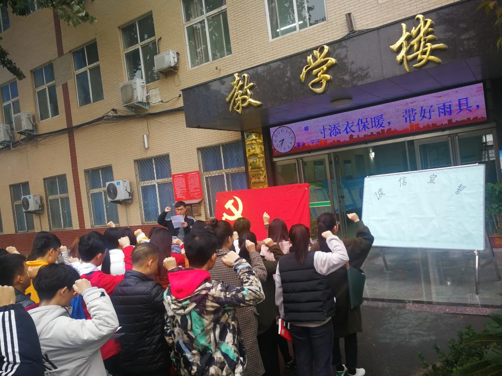 诚信是一种自尊、自重,更是真实、坦荡,同样它也是一种光荣,为了营造良好的学习氛围,体现公平公正的考试原则,11月17日上午8点30分,williamhill英国中文各党支部积极分子在1号楼门前进行了考前诚信宣誓活动。