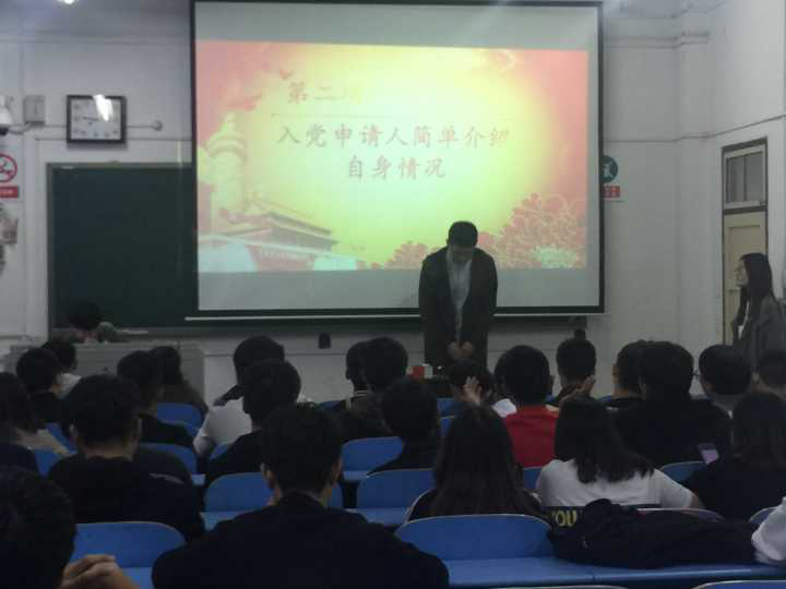 本次选举大会本着公平公正的原则,择优秀的同学进行选举。大会开始第一项,全体起立,奏国歌。大会进行第二项,由入党申请人简单介绍自身情况。入党申请人在此都谈到了自己对党的认识,并都为能成为其中的一员而努力。