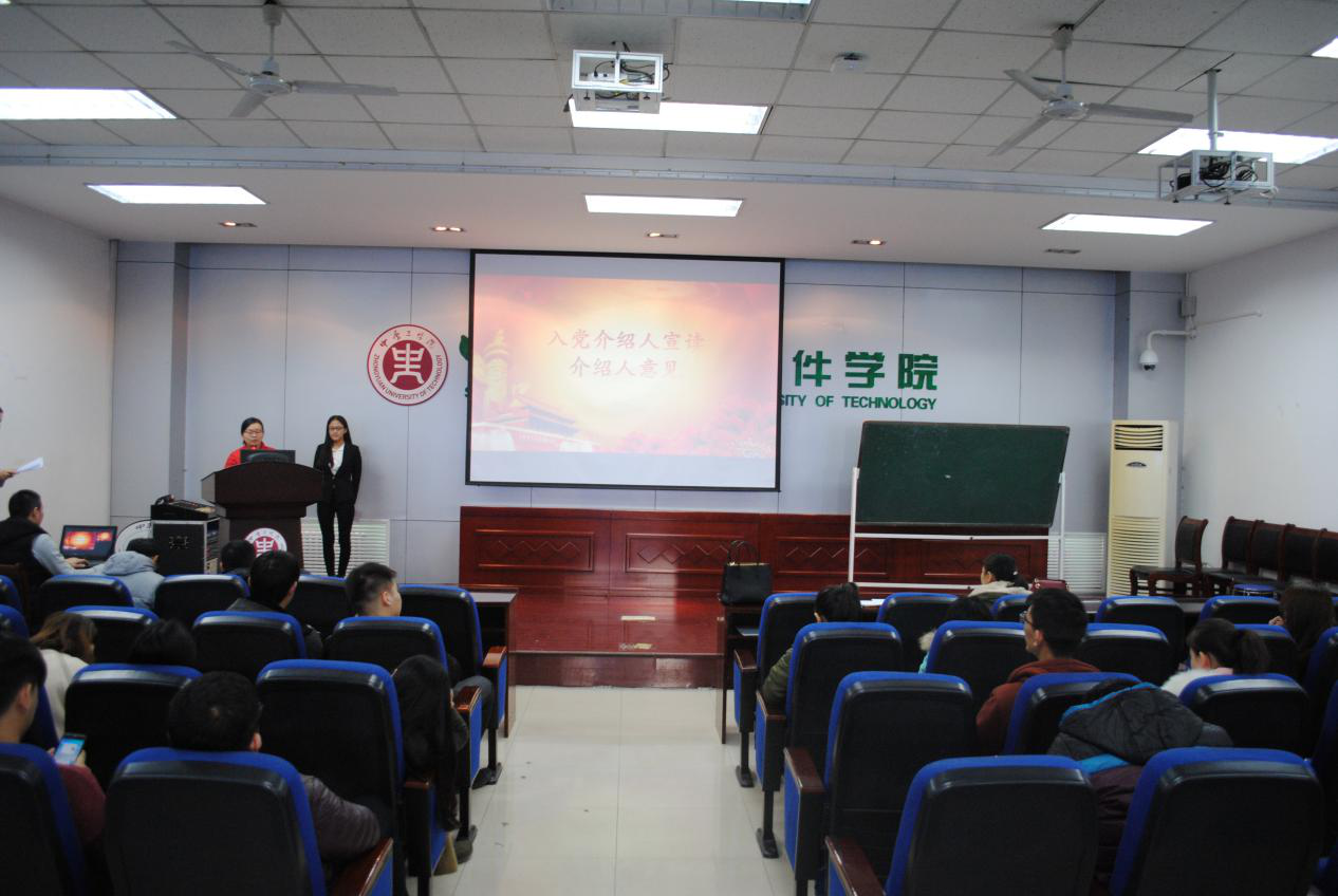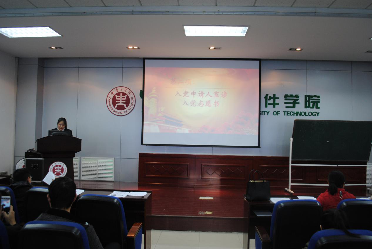 大会在国歌奏响中拉开帷幕。随后,赵晓静等13名同志依据大会议程,依次宣读入党志愿书,向党组织汇报自己的入党动机、基本情况、个人经历、家庭情况等内容。在这13位同志详详细的宣读完入党志愿书后,他们的入党介绍人也向大会介绍了所属发展对象的有关情况,并发表自己的意见。在支委会审查支部大会报告发展对象的情况后,与会党员发表意见,并对发展对象能否入党做出决定。随后,正式党员以无记名投票的方式进行投票。发展对象也对支部大会讨论的情况表明自己的态度。