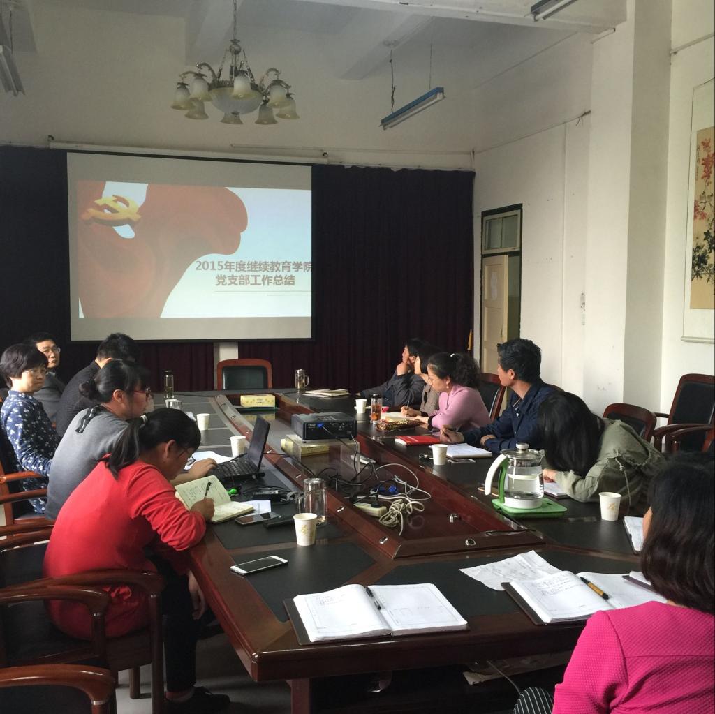 会上,李书记带领大家认真学习了最新修订的《中国共产党章程·总纲》,回顾了我党指导思想的发展历程,并对党支部书记提出了“认真做事,踏实做人”的殷切希望。随后,各支部书记分别对该支部2015年度工作进行总结汇报。党支部始终将加强党性修养作为首要工作,创新活动形式,增强活动效果。williamhill英国中文教工党支部将教学科研工作与支部建设有机结合起来,以教促建,相得益彰;继续教育学院党支部创新理论学习形式,以观影和QQ讨论组的形式鼓励支部成员加强政治理论学习。