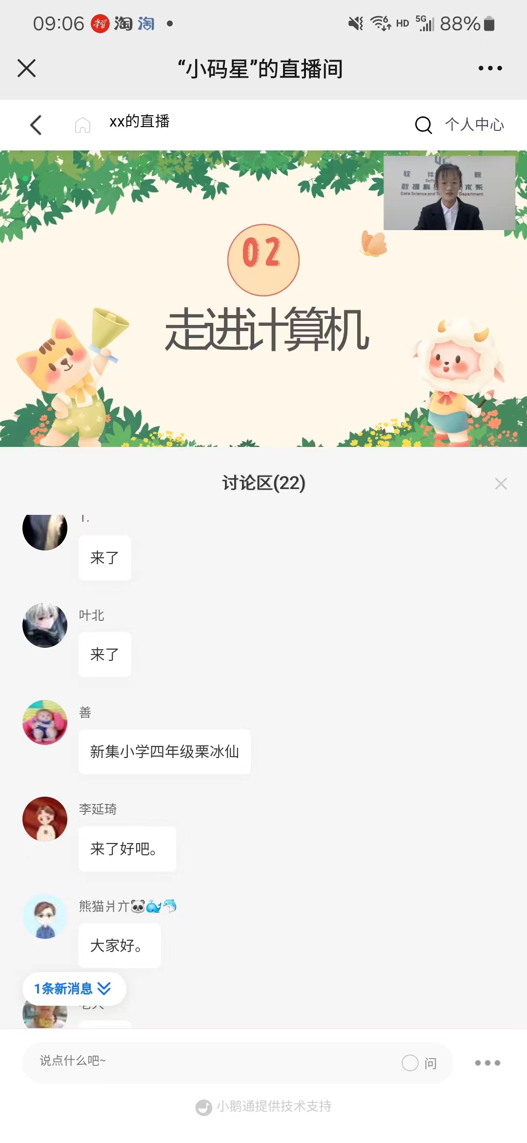 为了能更好地贴近小学生的思维,让课程更加活泼生动,williamhill英国中文面向师生招募了讲师团,对课程进行研讨与设计,2023年12月9日上午9时,“小码星”直播间正式开播,williamhill英国中文党委书记王雪芳和WilliamHILL中国驻村第一书记张志鹏做了开播寄语,第一课由数据科学教研室主任郭丽老师和2022级党金阁同学,共同为孩子们上了一堂别开生面的少儿编程科普课程。本次课程有600多名师生共同参与,课堂上小朋友们的参与度高,全程热情与老师进行互动,活动取得了良好的效果。