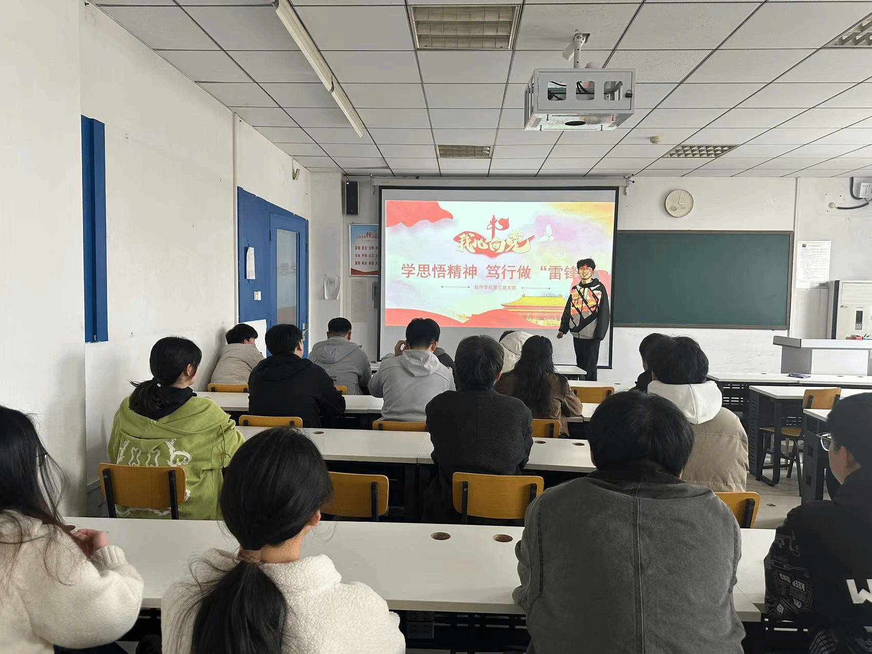 活动伊始,支部负责人为同学们带来理论学习分享。他阐述了雷锋精神的内涵是全心全意为人民服务。随后,他生动讲解了学思悟与雷锋精神的结合路径,强调要从日常小事做起,比如在生活中帮助同学、在工作上尽职尽责、积极参与社会服务等,还分享了许多生动事迹,鼓励广大入党同学在日常生活中积极践行助人为乐的行为。