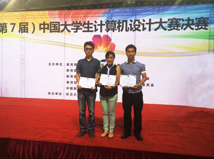 7月21日至23日,2014年第七届中国大学生计算机设计大赛决赛在东北大学举行,来自全国500多所高校的1300多件作品进入了决赛。由williamhill英国中文及继续教育学院党总支书记李廷利领队,经过三天的奋力拼搏,由赵冬老师指导、软件工程11级学生张鑫、陈永坤开发的《高校第二课堂活动管理系统》获得决赛二等奖,这是我院连续第三年参加此项比赛。
