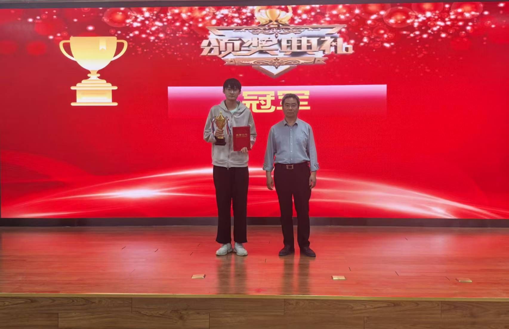 李家名同学获得了本次比赛的冠军,刘冉同学获得了此次比赛的最佳女子奖。学院院长刘卫光为冠军和最佳女子奖获得者进行了颁奖。