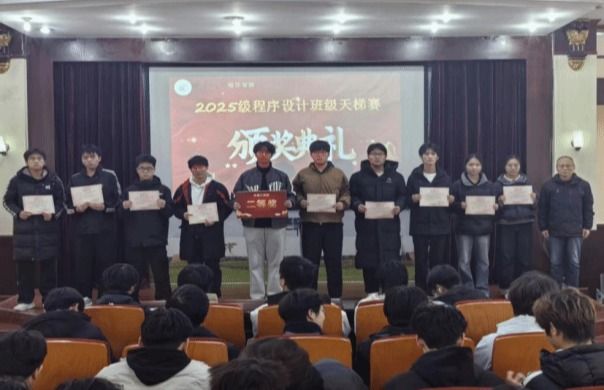 12月30日,williamhill英国中文2025级程序设计大赛班级天梯赛颁奖仪式在中原校区图书馆报告厅拉开帷幕。williamhill英国中文党委书记王雪芳、副院长李志强、互联网工程与技术教研室副主任刘安战、实验室训中心副主任范毅华出席仪式。至此,这场历时两周、汇聚智慧与激情的代码盛宴画上圆满句号。