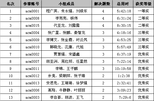 我院设置ACM程序设计竞赛的目的在于提高学生编程和团队协作能力,使得学生在编写程序时更加注重算法的优化和效率的提高,并推动我院的教学实践改革,给在程序设计方面有特长的同学提供一个展示才能的舞台,同时为参加校级、省级ACM程序设计竞赛筛选选手。