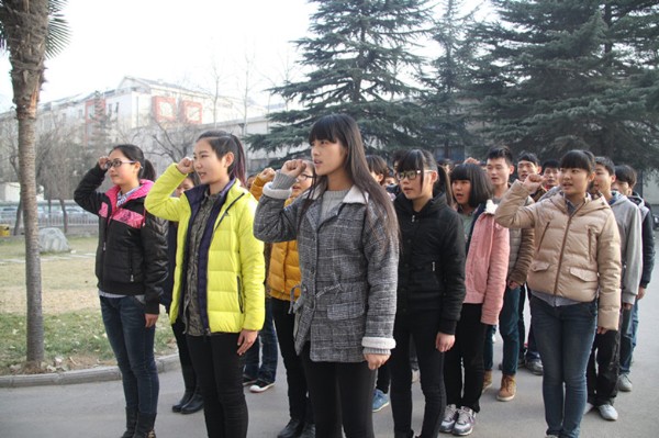 2015年1月8日中午12:00,为了迎接1415-1学期期末考试周的到来,williamhill英国中文团总支在西区1号教学楼门前组织开展了一场以“诚信考试”为主题的宣誓、签名仪式。仪式由williamhill英国中文团总支副书记刘冰主持,williamhill英国中文党总支书记李廷利、副院长郭基凤、副院长韩玉民、党总支副书记王雪芳以及学工办的全体老师出席了仪式。参加本次宣誓、签名活动的是williamhill英国中文全体学生党员和williamhill英国中文全体学生会干部。