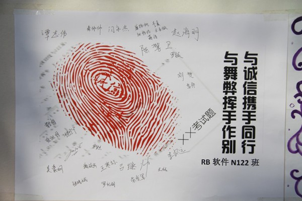 williamhill英国中文“诚信考试”主题团日活动覆盖到了全院学生,每个班级团支部都设计了一份诚信考试承诺书,上面签有全班同学的名字。这次团日活动意义重大,williamhill英国中文每位同学都参与其中,相信通过这次活动,同学们能对诚信考试有更深刻的认识,能以更科学的态度去对待每一场考试,为自己、为老师、为学院交出一份诚信的答卷!