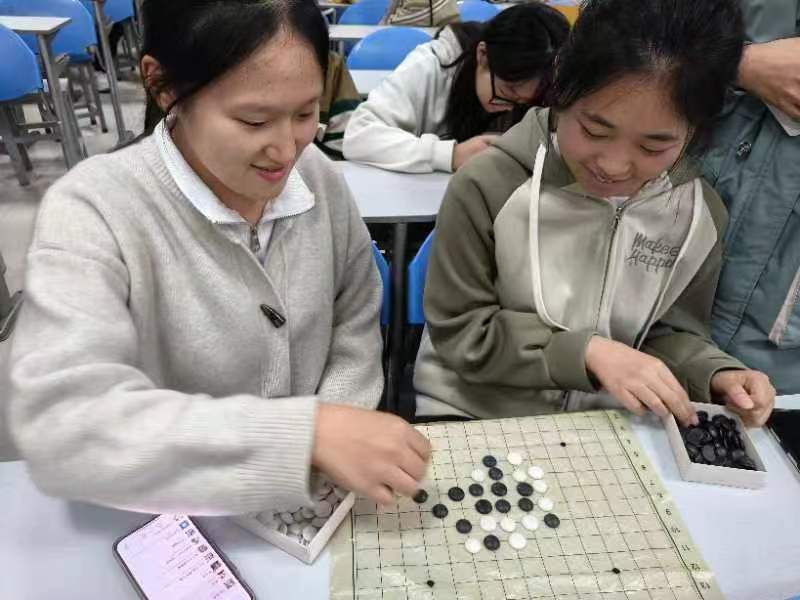围棋,作为国际通行棋种,流传多国。主要锻炼选手计算能力、布局谋篇能力以及临危不乱的心态。本次比赛要求10分钟内,判定胜负。过程中,参赛者们处变不惊,淡然应对。结束时,棋盘上已是棋布星陈、棋布错峙。一副精彩的棋局呈现在观众眼前,引得围观者喝彩声一片。