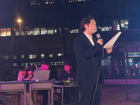 晚会以街舞社一曲酷炫的舞蹈串烧作为精彩开场,他们用充满激情的舞蹈在聚光灯下尽情挥洒着青春与汗水,点燃了同学们的热情。晚会节目精彩纷呈,吉他弹唱《我记得》,歌词中没有一句思念,却无不表达着对世界上最伟大的女性——母亲的思念。夜色渐深,晚会的气氛也在一个个节目中逐渐升温。晚会中场,主持人邀请台下观众参与“心有灵犀”小游戏,参与者自行组队,两人一组,一人面对屏幕演绎图画内容,另一人背对屏幕根据手势动作猜测内容。观众们在游戏中尽情发挥,将晚会的气氛推向高潮。