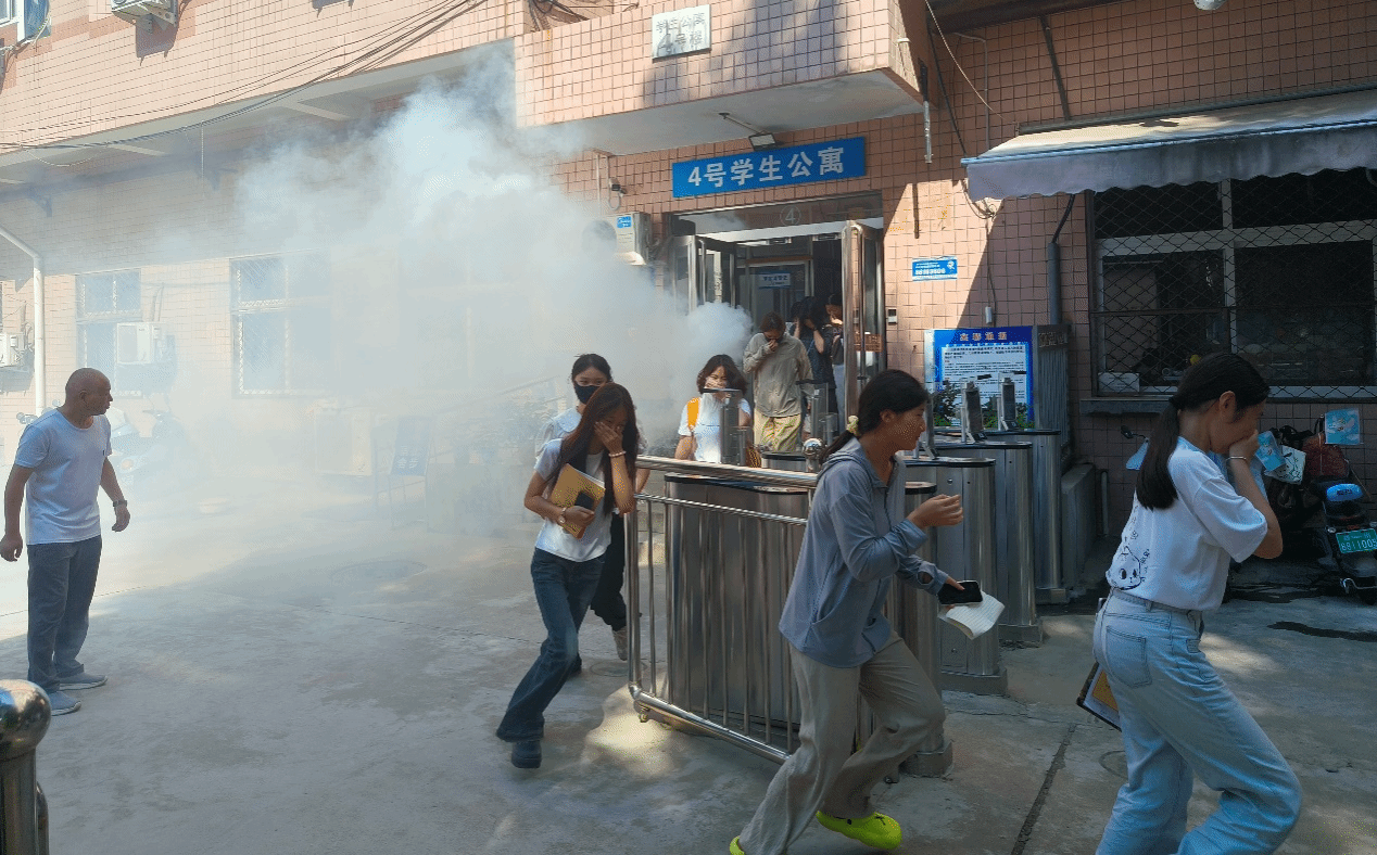 培训过后,紧张而有序的消防演练开始了。随着警报声的响起,学生们在工作人员的指导下,迅速而有序地撤离,展现出了良好的应急反应能力。