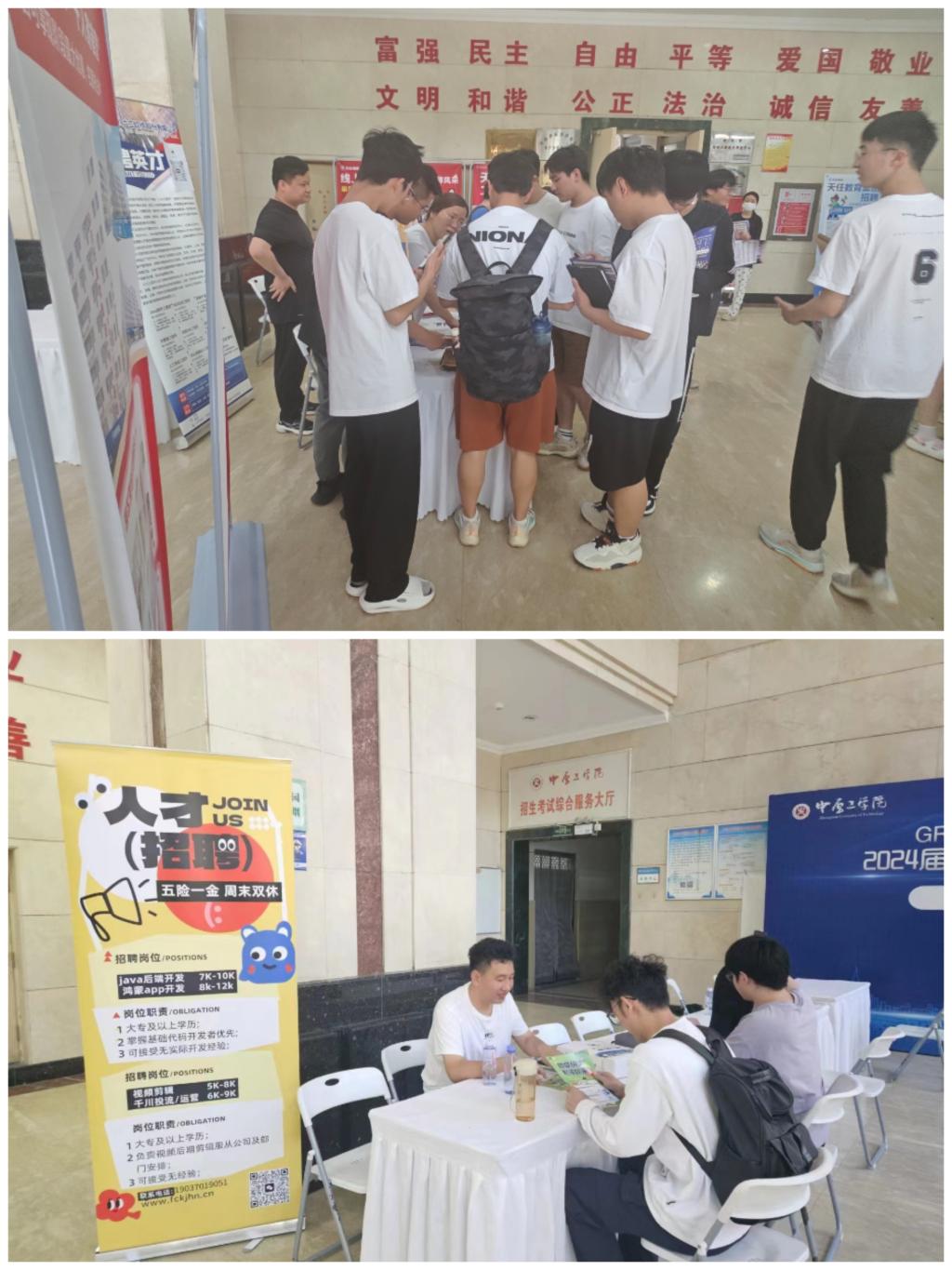 活动期间,学院邀请省内多家知名企业来校招聘,包括河南云和数据信息技术有限公司、河南八六三软件股份有限公司、河南天任教育科技有限公司、郑州宏软集团、福茨科技有限公司、中原绿色产业生态发展有限公司、河南传鼎网络科技有限公司等企业,涵盖软件技术、电子信息、教育培训等多个行业,共提供预计100余个就业岗位。