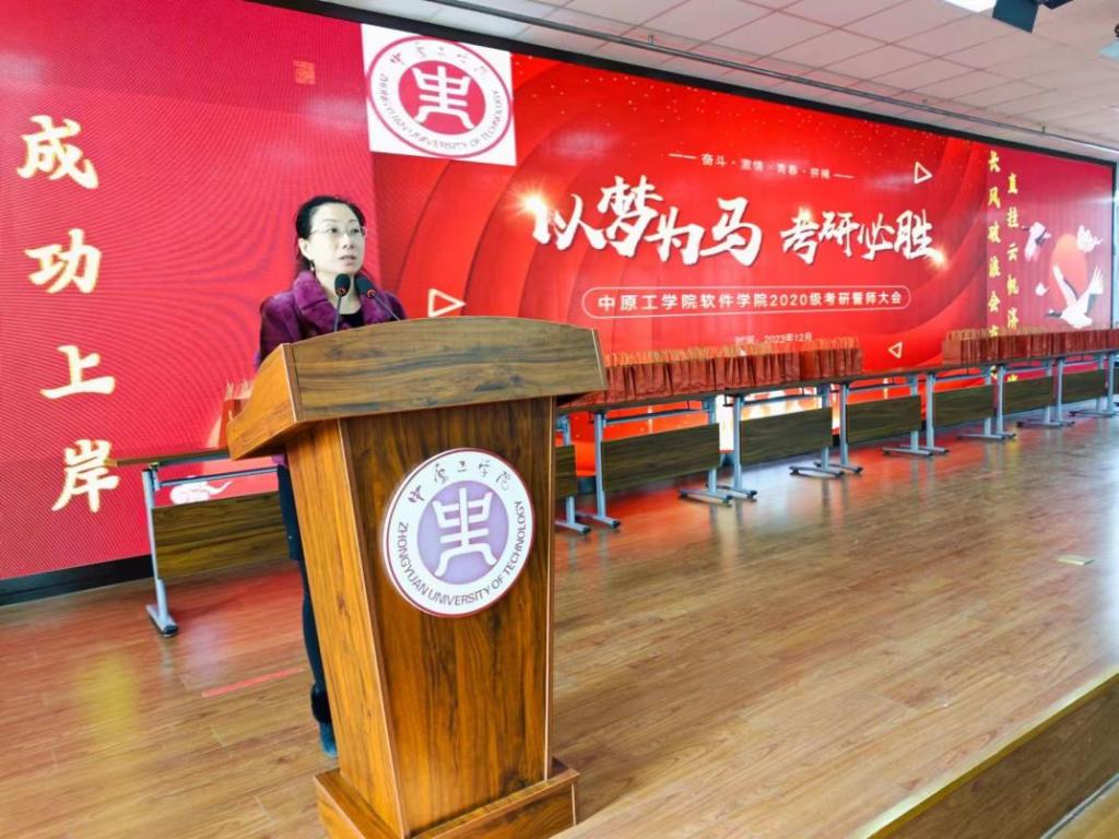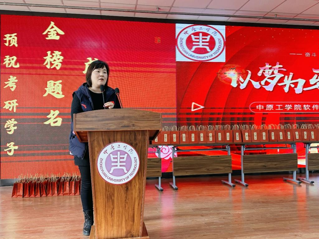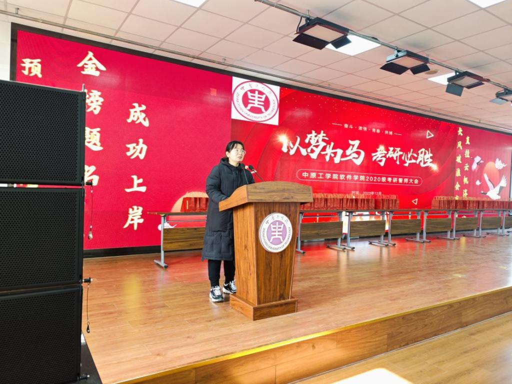 王雪芳书记作动员讲话,她鼓励大家以自信、饱满的精神状态面对人生这次大考,从容应对,满怀信心,一战成硕!她告诉同学们毕业班辅导员也将在考研当天帮助大家处理各项事宜和突发状况,做好后勤保障工作,助力学子都能成功“上岸”。