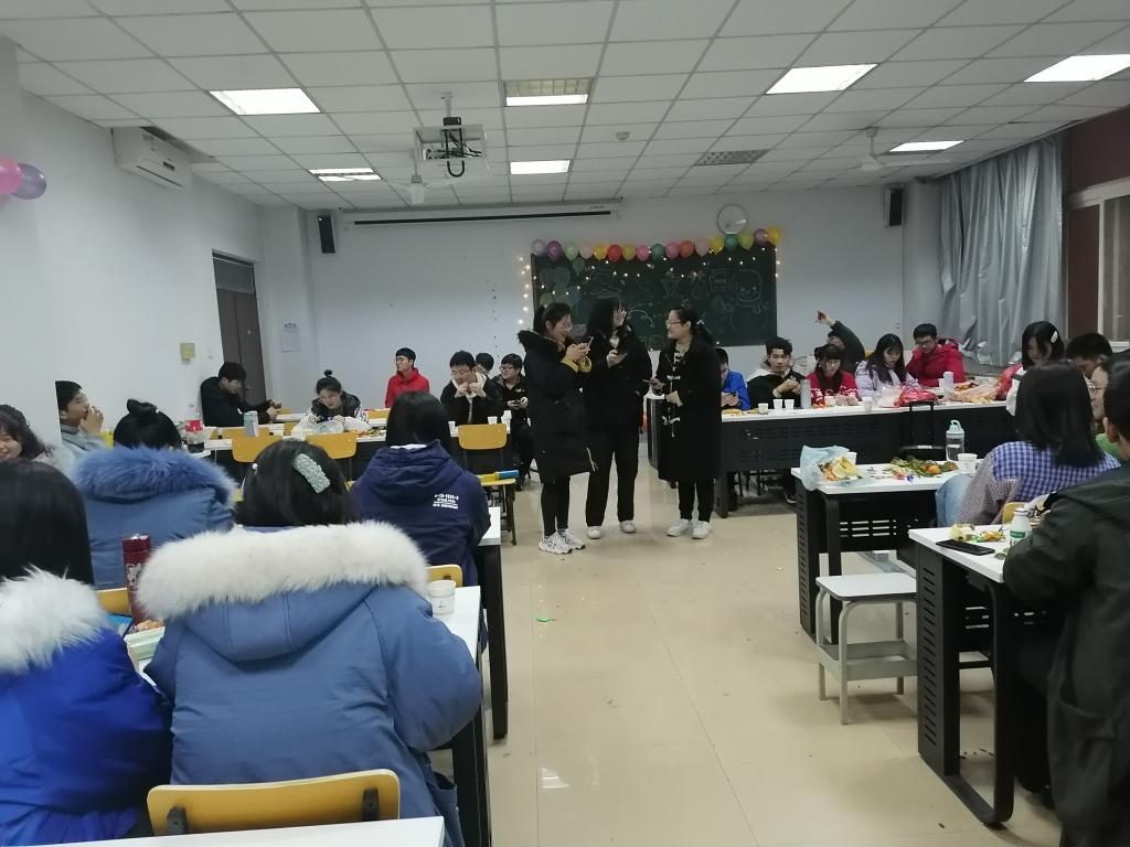 在一片欢声笑语中,两位班长上前致辞,为大家送上冬至祝福。