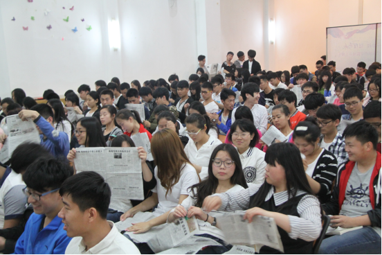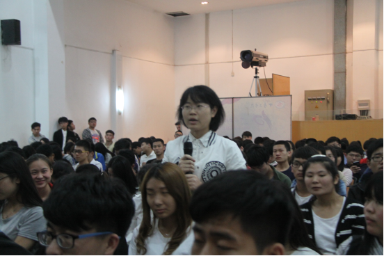 现场气氛轻松活跃,互动不断。游戏“背对背”选择一个熟悉的人并让其描述你今天的衣着,这个游戏让观众认识到不要太在乎别人的目光,因为并没有很多人关注你,做好自己才是根本。“扔纸团”游戏让观众们了解到了未来是不确定的,创造未来不仅需要方向,更需要行动。此外,励志广告、短片帮助同学们建立自信。