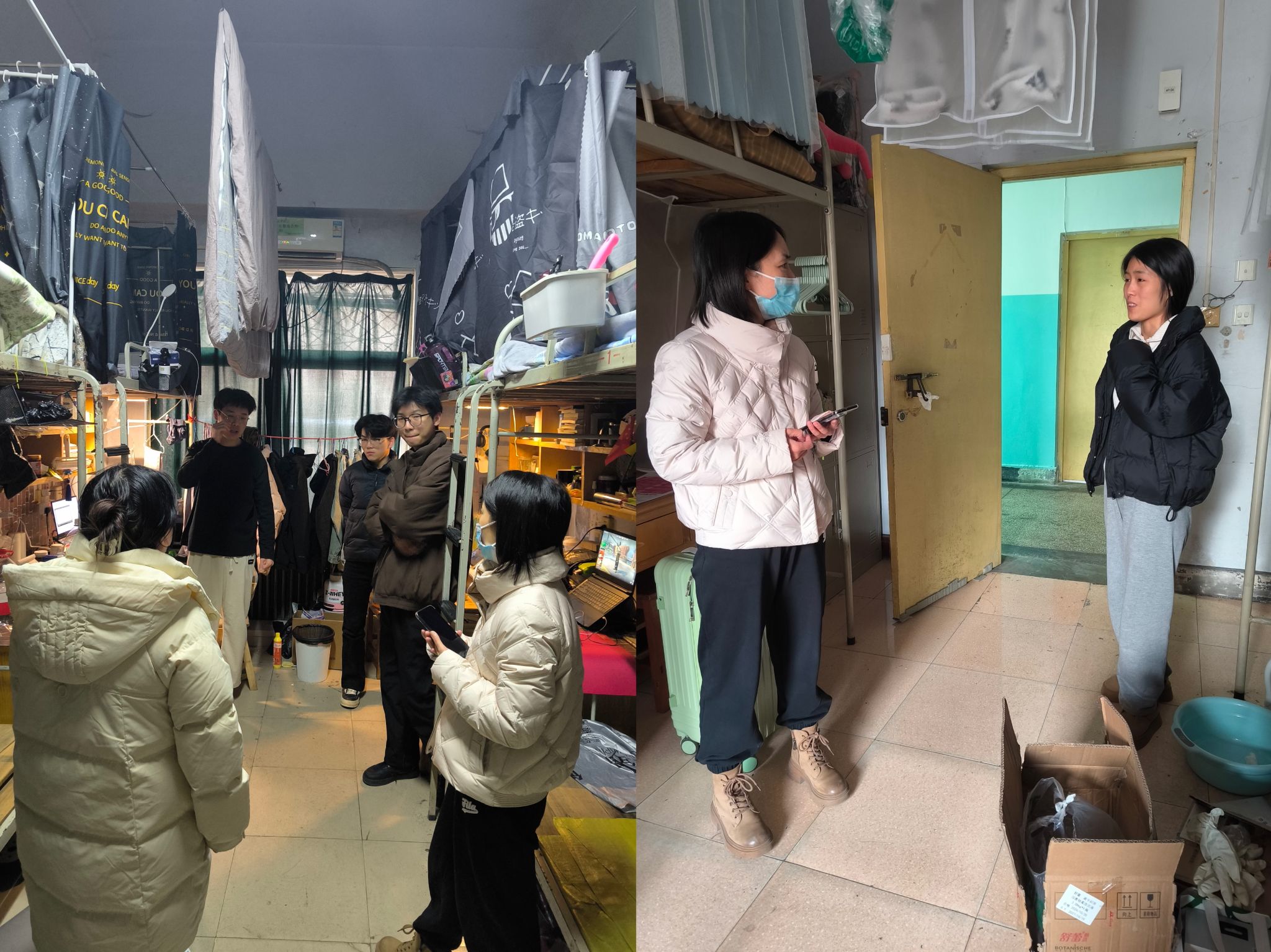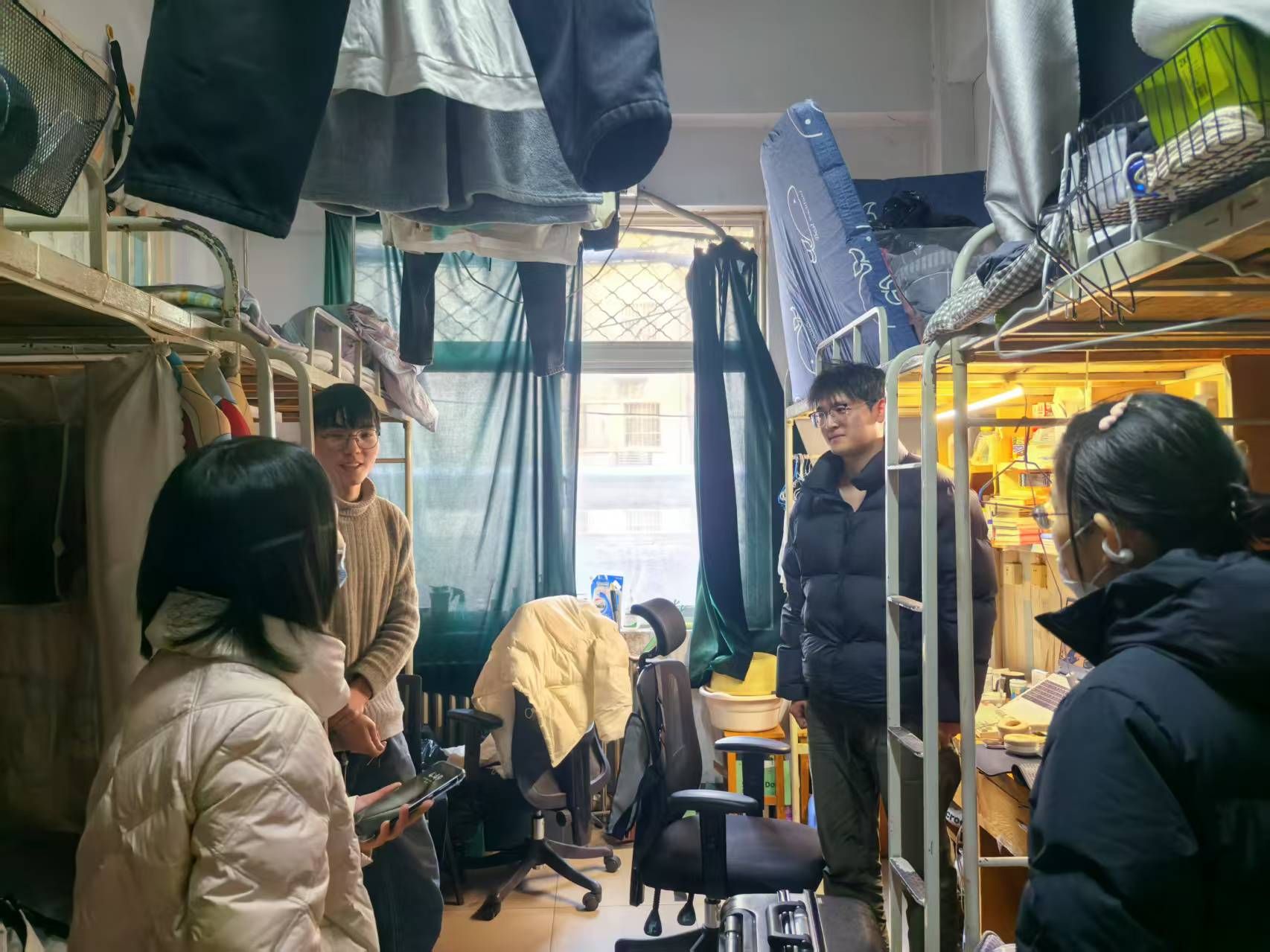 走访过程中,老师与同学们亲切交谈,详细了解了大家的假期生活、返校行程以及参加宣讲会的准备情况,耐心解答就业方面的疑问。叮嘱同学们在校期间要增强安全意识,注意宿舍用电安全,保管好个人财物,谨防电信诈骗,要保持宿舍卫生整洁,营造安全舒适的生活环境。同学们对学院的关心表示感谢,在校期间将严格遵守学校各项规章制度,以积极的精神面貌迎接新学期。