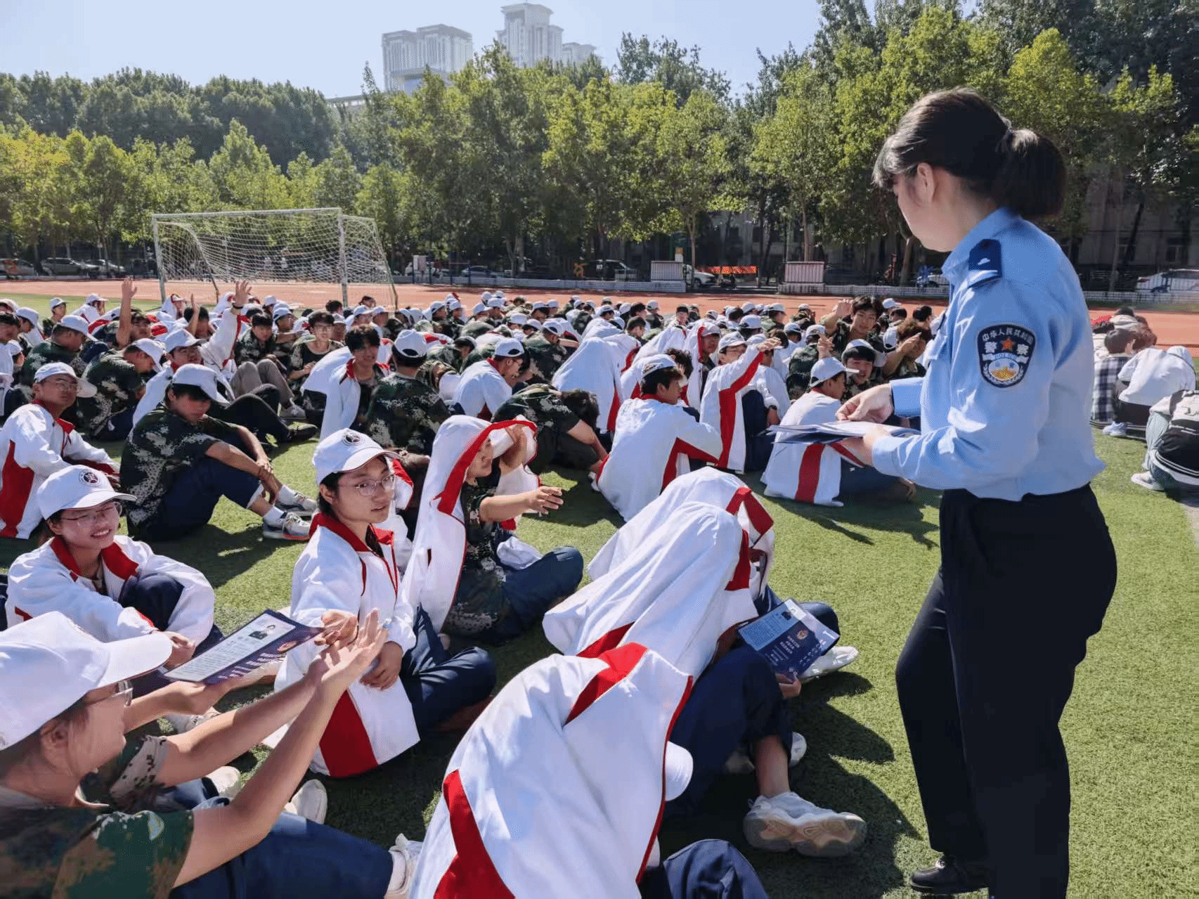 随后,学校治安消防科王岩老师结合校园实际,重点强调了宿舍消防安全,引导学生自觉承担起安全责任。活动尾声,建设路派出所民警为全体新生发放了安全防范宣传页,将安全教育延伸至日常。