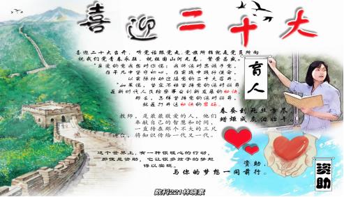 为大学生迎接党的二十大胜利召开,活动面向williamhill英国中文、数据科学与技术系,鲲鹏书院全体学生且鼓励享受国家助学贷款,国家助学金以及各项奖学金资助的同学积极参加。参赛者通过海报,手抄报等表现形式,以 “喜迎二十大,永远跟党走”,“红心向党,感恩国家”,“生在国旗下,五星皆信仰”等题目,配以文字图画生动形象的表达了大学生对祖国和党的热爱,对资助政策的感恩。