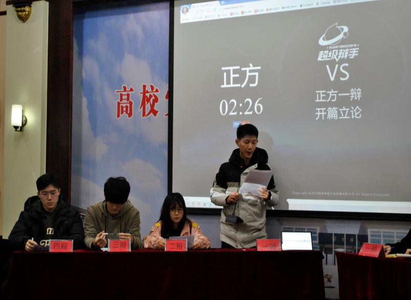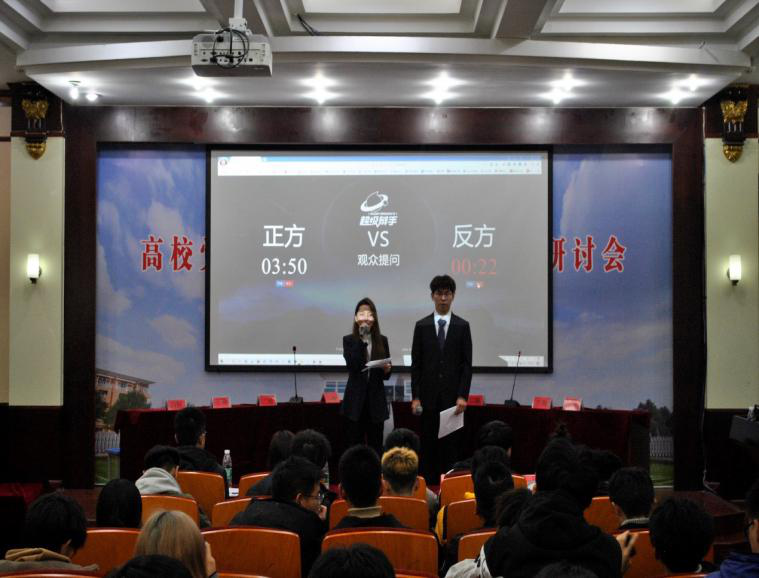 每支队伍均由四名辩手组成,分工明确,配合默契。在经过开篇立论、攻辩、三辩质询、一辩总结陈词、观众提问五个环节后,现场的辩论气氛逐渐升温,达到高潮。第一场比赛在不讲武德队和黑化肥会发挥灰化肥不发挥队之间展开,双方就“评定国家助学金,需不需要考虑被资助者的成绩”一辩题展开辩论,正方陈词精辩,理论有据,反方思维清晰,逻辑严谨。第二场比赛由爆破拆迁队对阵他们都不队,他们的辩题是“经济困难学生,花呗是利大于弊还是弊大于利”,双方从校园生活出发,旁征博引,妙语连珠。