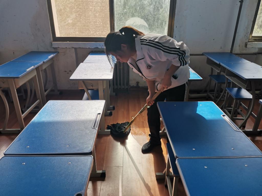 在本次打扫教室的工作中,同学们主要负责东教学楼、主教学楼和基础实验楼教室的卫生,同学们拿着工具一丝不苟的清洁着每一间教室,从讲台到角落,他们以认真的态度,高质量的完成着各自的任务。教室虽多,但同学们依旧不说苦,不喊累,努力把我们上课的教室清理干净。充分发扬了勤劳能干的工作精神。