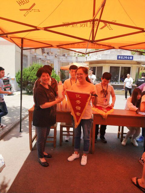 本次颁旗,有宿管会的成员和周阿姨亲自到场指导。宿舍长更是有序的排队领旗,充分展现了优秀宿舍的风采。